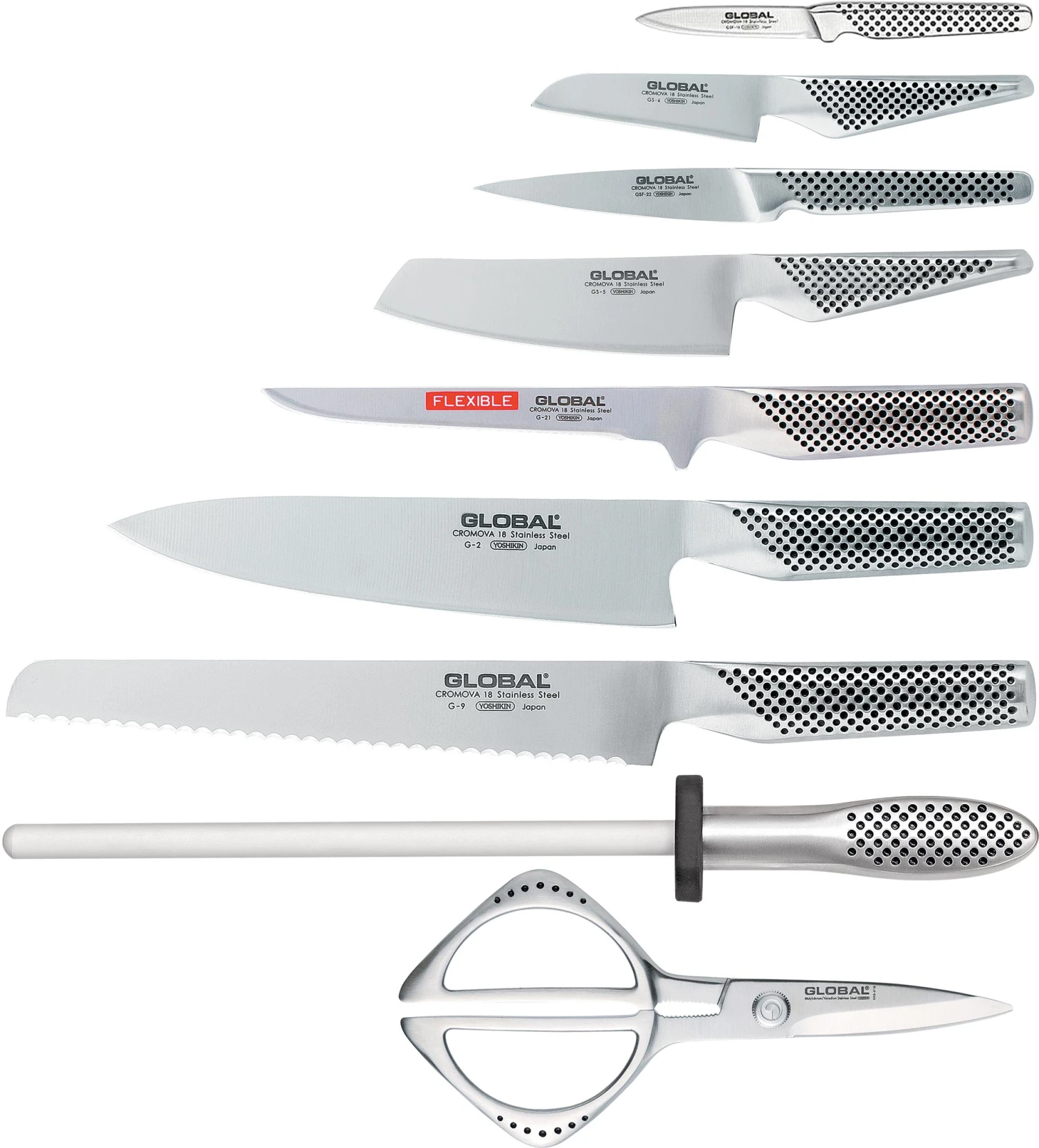 When purchasing any GLOBAL® knife block set, we strongly recommend investing in a ceramic water sharpener or whetstone in order to maintain your knives and keep them razor sharp.
