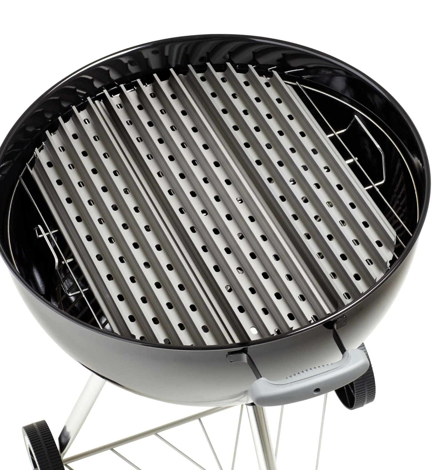 GrillGrates deliver more control and flexibility to charcoal grills, making them the ultimate upgrade for your 22.5″ Weber Kettle. They act as a flame shield allowing more direct grilling at higher temperatures. GrillGrates for charcoal grills are used on top of the existing surface. GrillGrates are reversible interlocking panels, giving you two grilling surfaces; rails up or on the flat side.