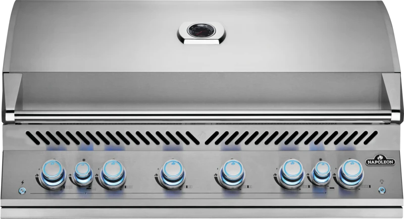 Make the Built-In 700 Series 44-inch Gas Grill with Dual Rear Infrared and Bottom Burners the crown jewel of your outdoor kitchen. The integrated infrared bottom burner heats to 1,800°F in seconds, meaning you can sear that steak almost instantly, then finish it off with a low grill, just like restaurants do. High-quality, 304-grade, stainless steel provides the stylish durability you’ve come to expect from Napoleon barbecues. Made from the same stainless steel, the 9.5mm thick cooking grids are virtually maintenance-free and provide iconic WAVE™ sear marks. Light each burner individually and instantly using the JETFIRE™ ignition. Cross lighting ensures all burners light and remain lit. The control knobs glow blue, and each knob, when in use, glows red to help you adjust things to the exact temperature for a perfect meal. That precise temperature control ensures searing, smoking, roasting, rotisserizing, and baking with ease. Built to seamlessly fit into your ideal outdoor kitchen, the Built-In 700 Series 44-inch Gas Grill has been designed specifically for ease of installation with integrated trim and longer wiring for no design and functionality restrictions.