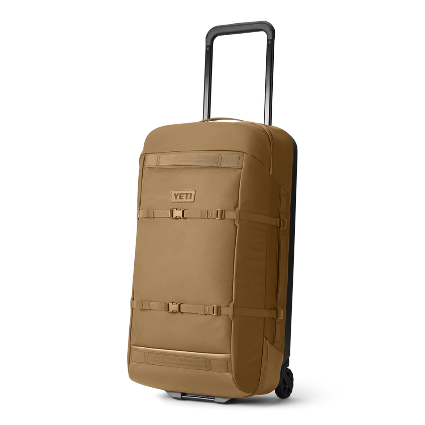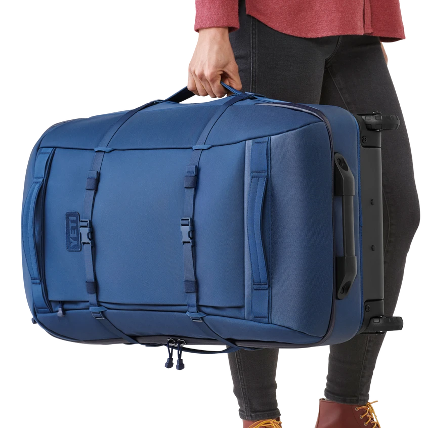Inspired by motorcycle gear, Tuffskin Nylon is an expedition-grade, 700 Denier, water and abrasion-resistant material. Go ahead and roll through puddles. Molded polycarbonate base and rugged materials and wheels ensure your luggage holds up against travel wear. Plus, these wheels are durable, fully serviceable, and designed for better clearance over curbs and rocky roads.